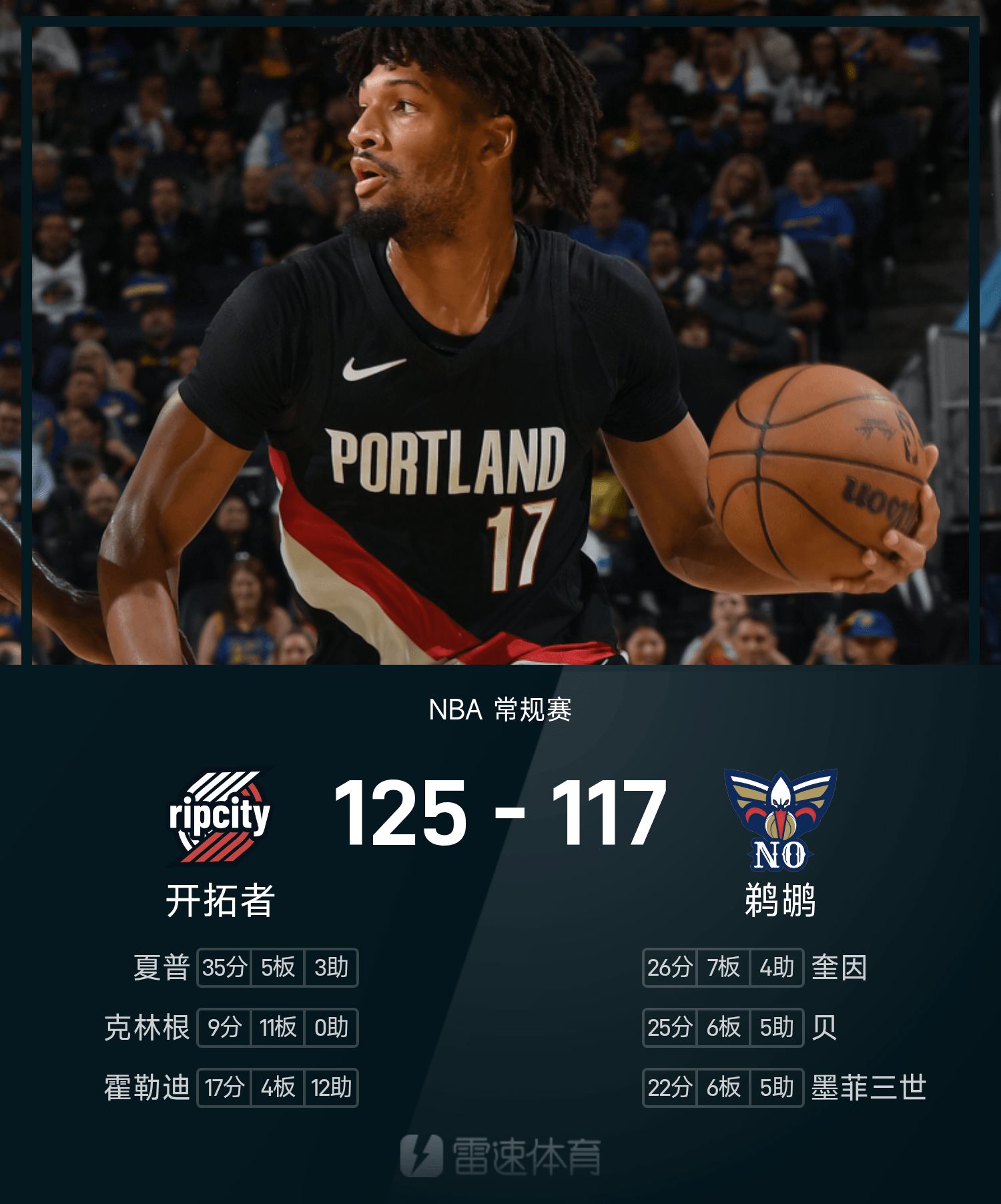 Báo cáo trận đấu NBA: Yang Hansen không xuất hiện & Sharp 35 điểm, Trail Blazers 125-117 Pelicans