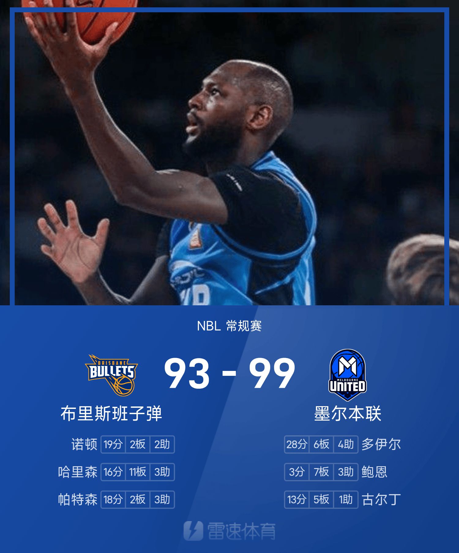 Báo cáo trận chiến NBL: Doyle 28 điểm và 6 rebound, Melbourne United đánh bại Brisbane Bullets 99-93