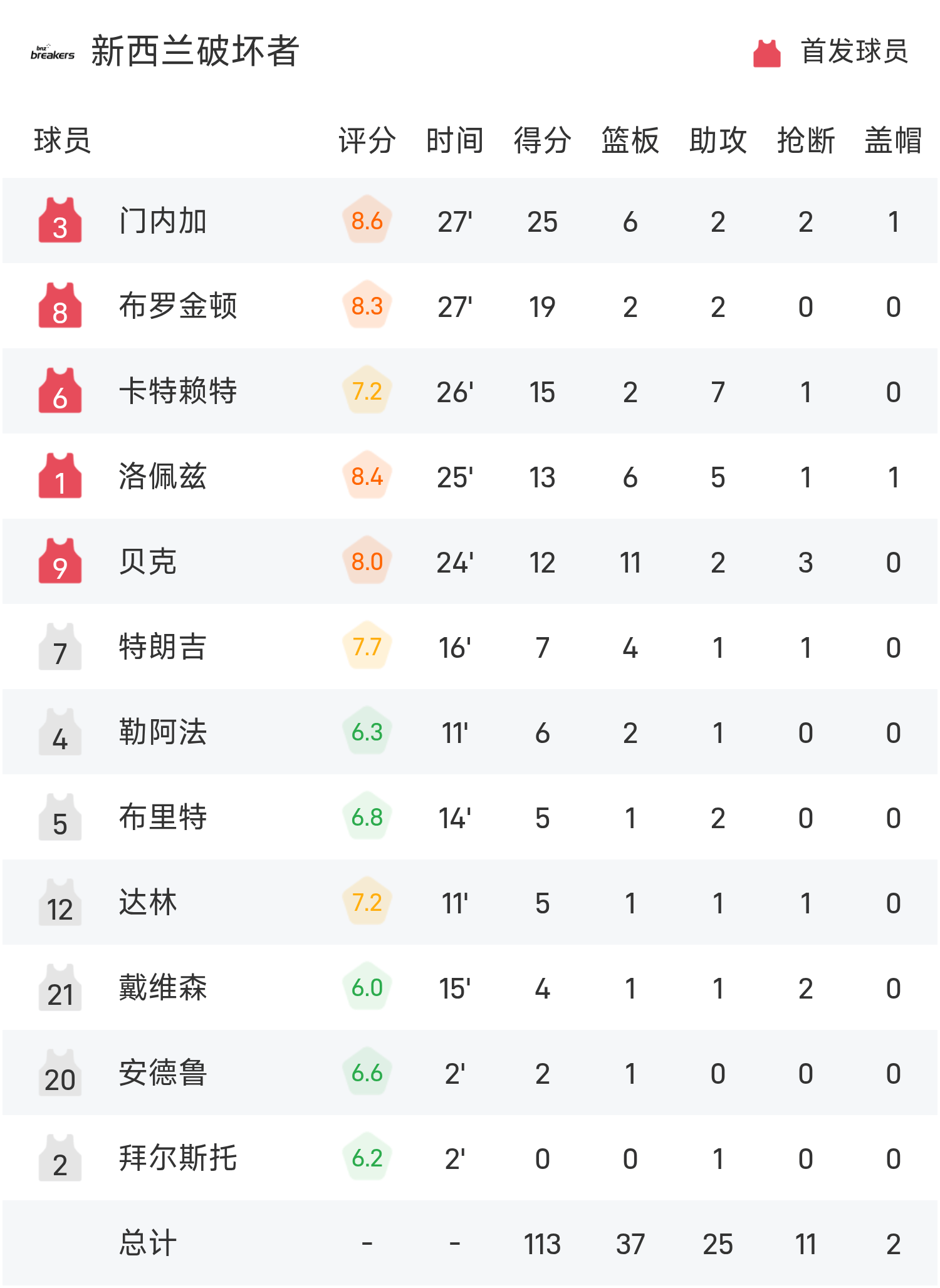 Báo cáo trận chiến NBL: Với 25 điểm và 6 rebound trong khung thành, New Zealand Destroyers đã đánh bại Brisbane Bullets với tỷ số 113-84
