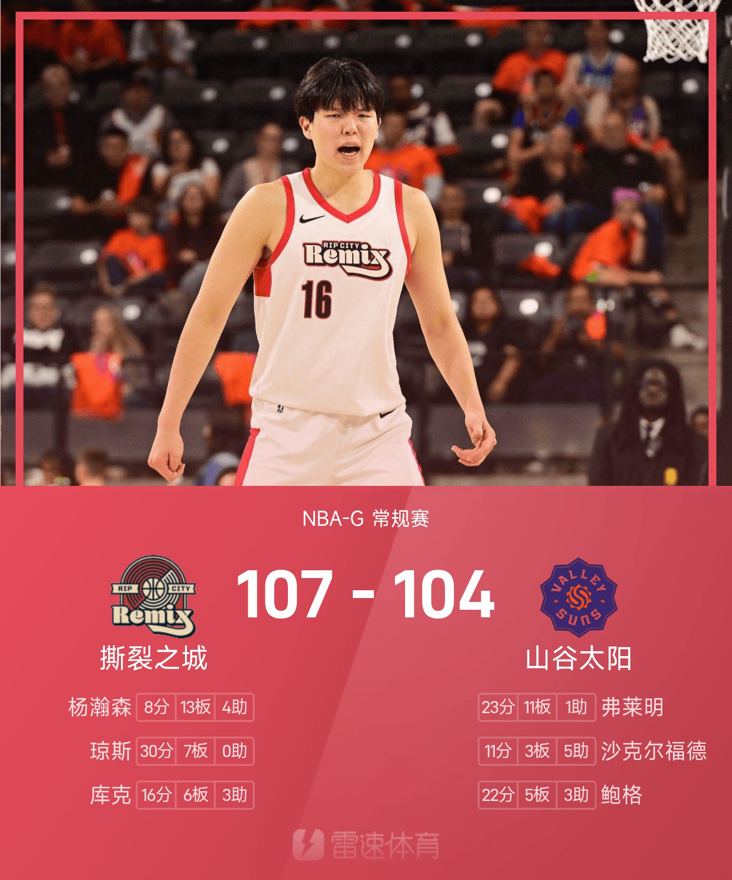 Báo cáo trận đấu G League: Yang Hansen ghi 8 điểm và 13 rebound, City of Tear suýt đánh bại Valley Suns 107-104