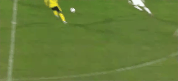 17' Delgado rê bóng từ giữa sân rồi bất ngờ sút, bóng đi vọt xà ngang