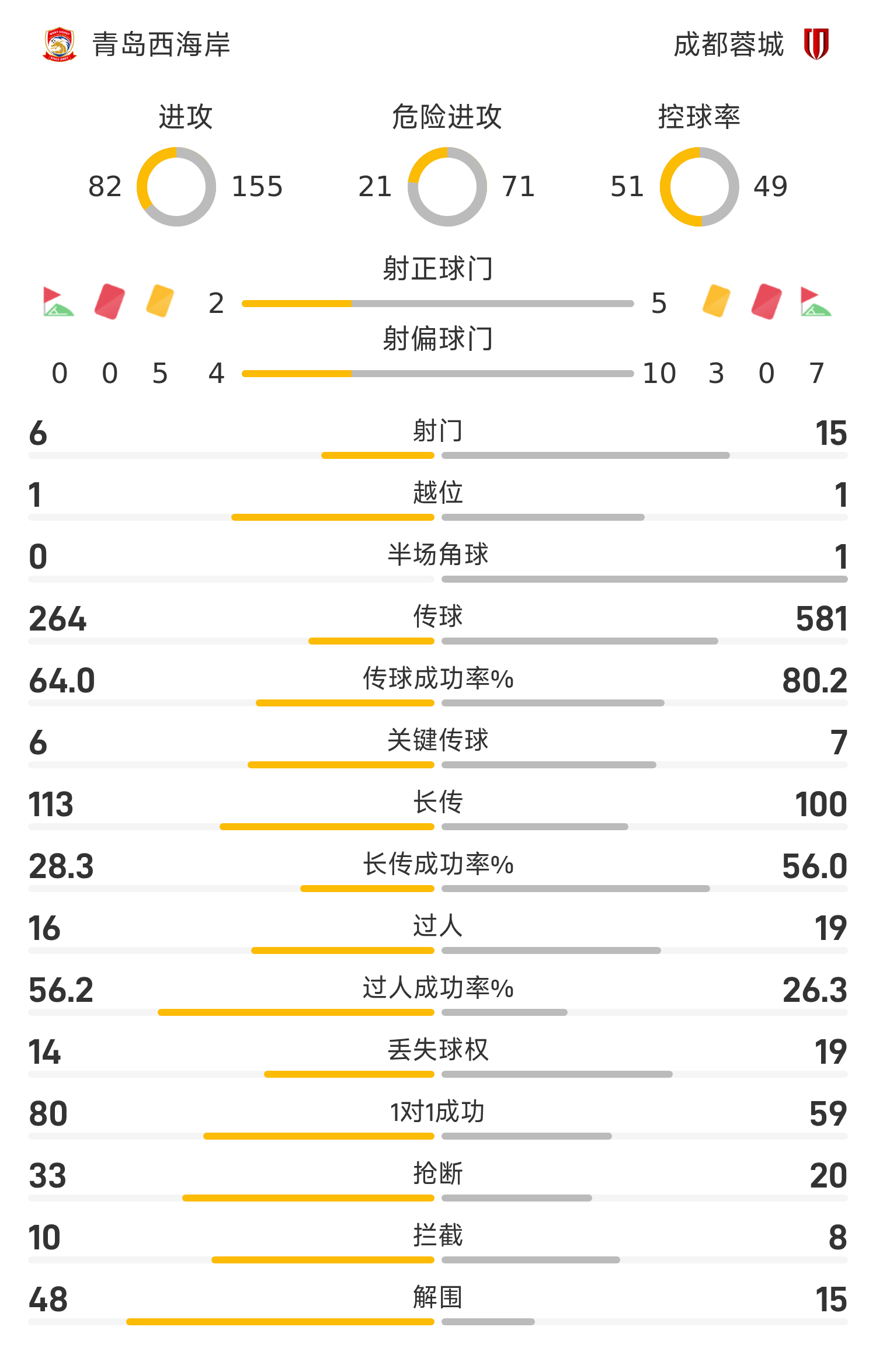 Đội hình xuất phát của Bờ Tây Thanh Đảo: 1-Li Hao, 5-Riccelli, 22-Yang Xi, 17-Chen Boliang (73'8-Zhang Xiuwei), 24-Duan Liuyu (86'14-Feng Gang), 20-He Longhai (41'13-Song Haoyu), 6- Xu Bin, 23-Matthaus, 11-Davidson, 10-Nelson (86'68-Fang Haiyang), 9-Aziz