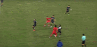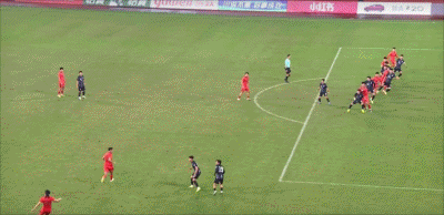 Đội tuyển Trung Quốc thực hiện quả đá biên ở phút 35, và sau đó thủ môn đánh đầu trong vòng 3 giây