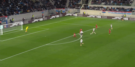 8' Wirtz nhận bóng trong vòng 3 giây rồi bất ngờ tung mũi tên lạnh lùng vào góc xa, nhưng bóng đi quá đúng và bị thủ môn cản phá