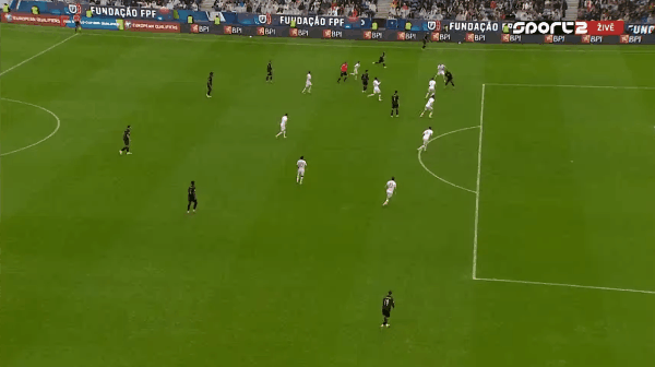 24' Bồ Đào Nha được hưởng quả đá phạt trực tiếp vào vòng trong khu vực ba giây, và sau đó phạm lỗi chơi bóng bằng tay ở phần tấn công