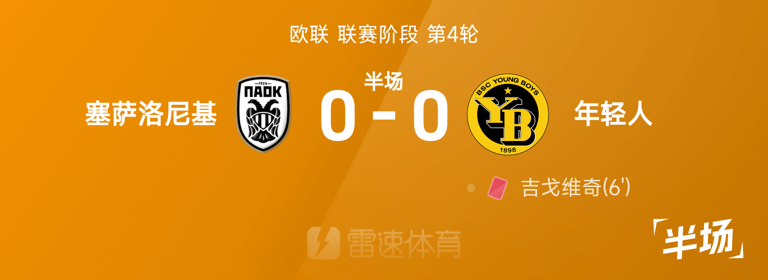 6686 Thể thao ngày 07 tháng 11 Ở vòng 4 Europa League 25/26, Thessaloniki đối đầu với Young Boys. Sau giờ nghỉ giải lao, tỷ số giữa hai bên là Thessaloniki 0-0, với Djigovic mặc áo đỏ.