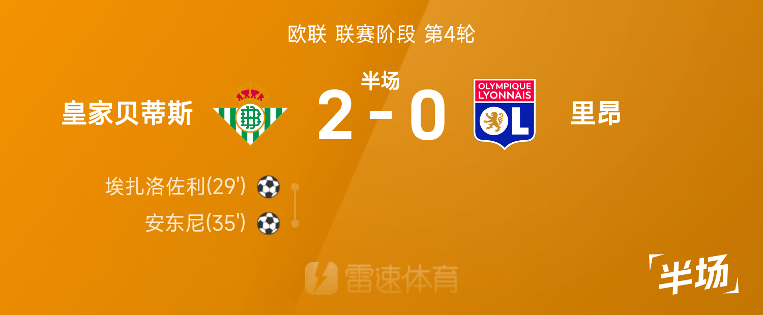 Hiệp 1 Europa League: Anthony ghi bàn một mình, Real Betis tạm dẫn Lyon 2-0