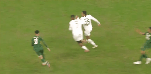 42’ Zhang Yuning bị đối thủ rê bóng dưới háng làm nhục, Fabio đẩy đối thủ cho đồng đội