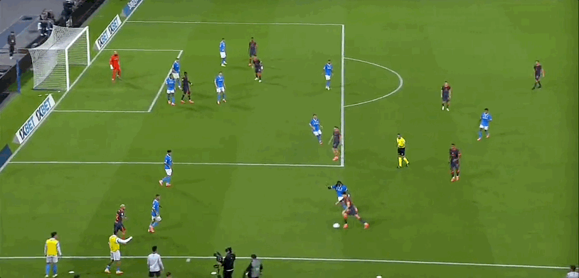 15’ Lautaro có một cơ hội tuyệt vời trong khu vực ba giây và cú sút của anh ấy đã bị thủ môn Naples cản phá